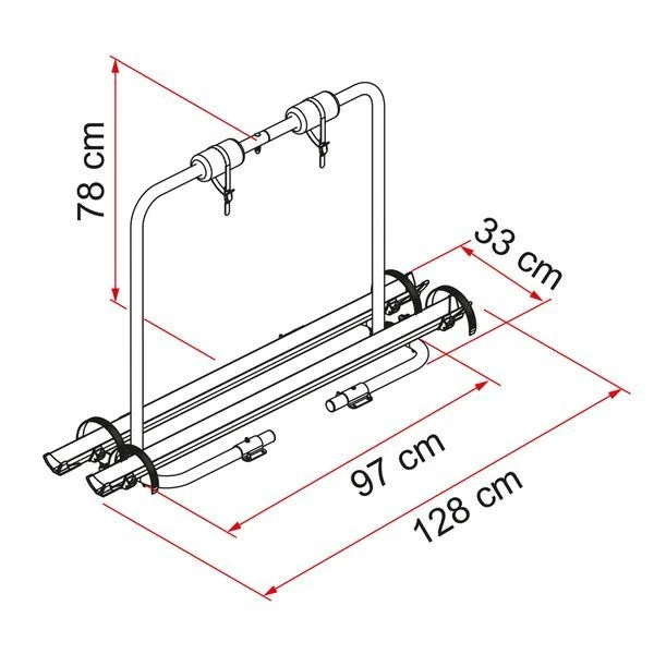 It fits all caravans with standard A frame (minimum size 402mm), Hobby type with extended frame and new Alko frame. No drilling is required. Bikes must be removed in order to tilt bike rack to get in gas bottle locker.