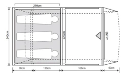 The breathable three-berth inner tent included can be clipped in to provide a luxurious sleeping area, designed to accommodate up to three average size adults. This is created using our darkened grey ‘twilight’ fabric, in order to cut down on exterior light and help you attain a deep, cosy and uninterrupted night’s sleep. This model utilises our bedroom ventilation system to maintain a comfortable sleeping environment by optimising airflow, whilst helping combat condensation and internal humidity.