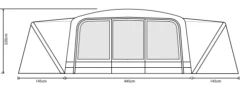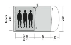 The expansive tinted windows permit a panoramic vista of the outside world and safeguard against harmful rays, whilst increasing privacy and illuminating the internal space on a morning; these are accompanied by zip-up curtains, which can be rolled totally back, or zipped fully in for complete privacy on an evening. A PE groundsheet has been sewn-in to increase convenience when pitching, reduce water ingression and prevent bugs from accessing the living area. This family tent has a full internal zip-back divider door panel, which is partnered by a huge mesh panel, large windows, and privacy blinds, creating a welcoming front porch area for alfresco relaxation.