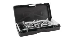 Outwell Appetizer Maxi two-burner piezo ignition stove, each powered by its own easily obtainable gas cartridge for versatile convenience, offers a practical cooking option perfect for groups and families on the move, on the beach or for emergency use.