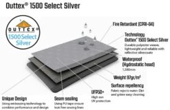 Apex ventilation and a central lantern hanging point plus two mesh pockets extend its practical flexibility. Its silver-coated, PU-proofed polyester fabric has a hydrostatic head of 1500mm. To make a larger shelter, a gutter can connect compatible designs
