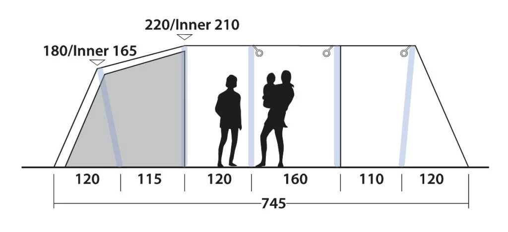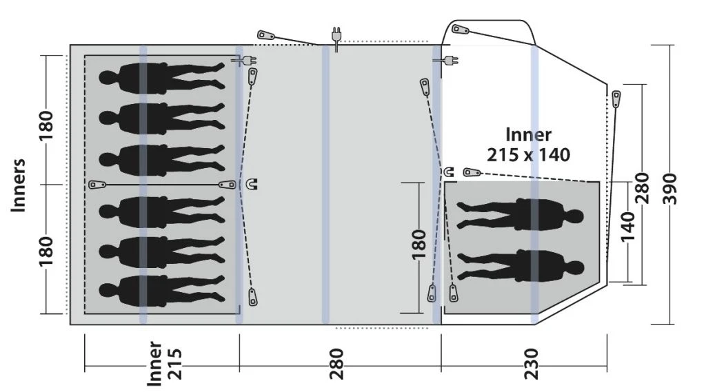 The large, airy 3-zone Outwell Knightdale 8PA has Quick & Quiet Access between the outer and inner zones.