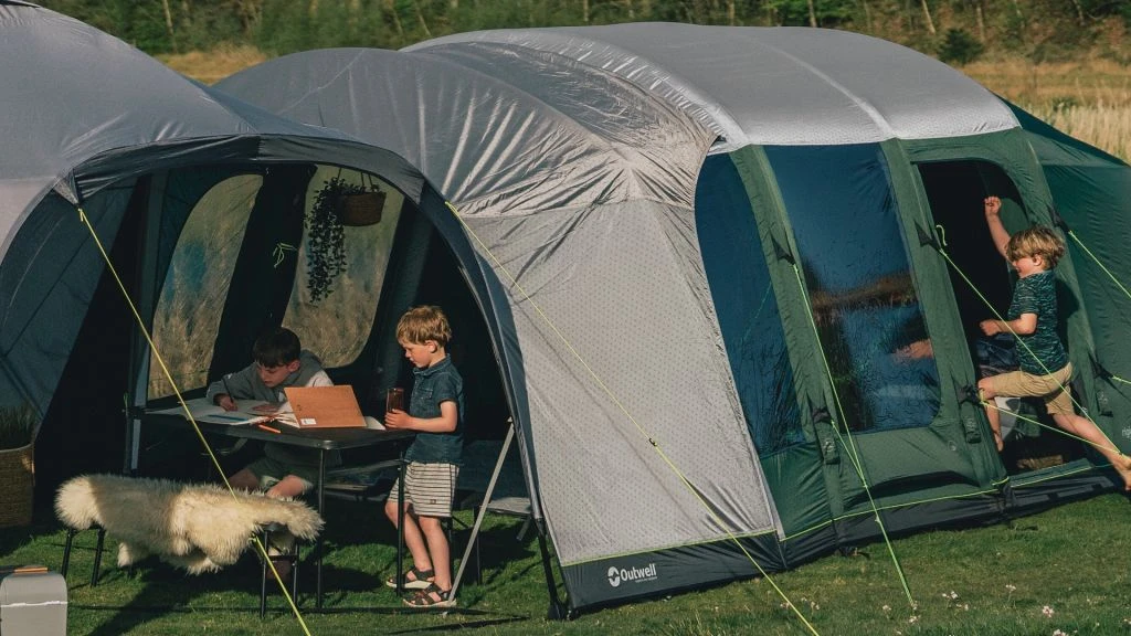 The Outwell Universal Connector L provides a covered central living area for communal meals and socialising by connecting Outwell tents together via an Outwell Summer or Event Lounge.
