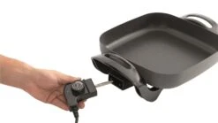 There’s a setting to keep cooked food warm so you can serve straight from the skillet.