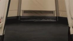 Internal curtains at the windows enhance the impression that this has traditional-style solid HydroTex® Polycotton RS walls yet can be rolled up for views out. The front door has a mesh panel behind and low vents aid airflow.
