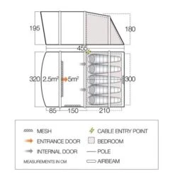 - Vango AirZone – High and low level ventilation panels combine to create a comfortable flow of air through the tent. Air circulation is essential for reducing condensation