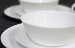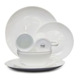An ideal set for 2 people, complete with 2 dinner plates, 2 side plates, 2 bowls and 2 mugs.