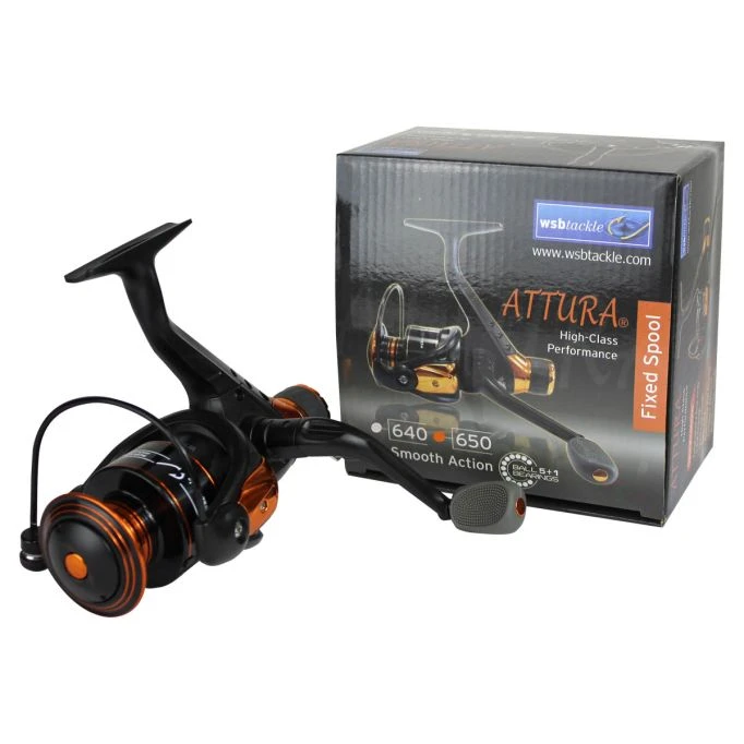 The WSB Attura 650 reels are top quality. 5 +1 ball bearing, precision rear drag, quick release drilled alloy spool, instant anti-reverse, ambidextrous folding handle and comes complete with a spare spool.