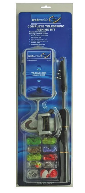 Also comes with a mono double sided tackle box and a selection of floats lures and sinkers.