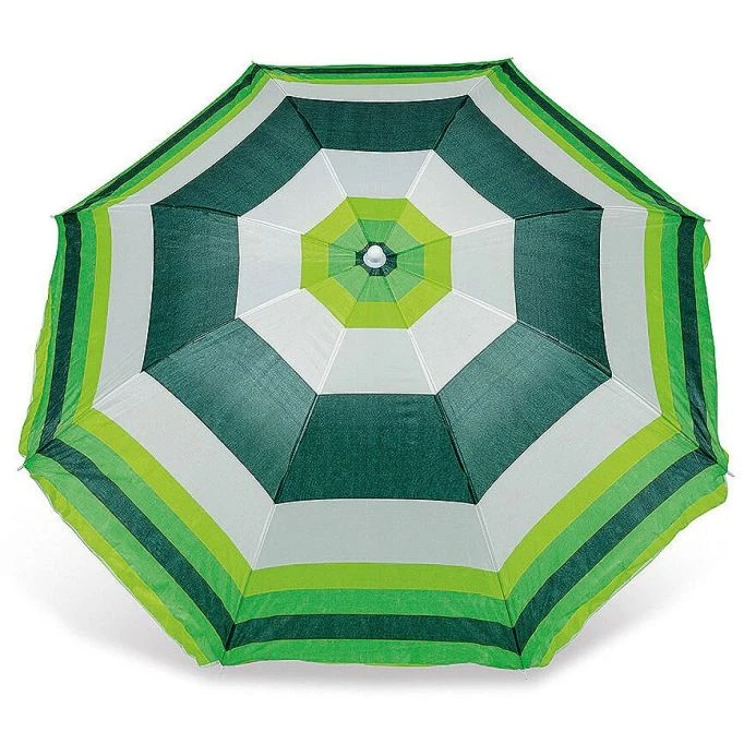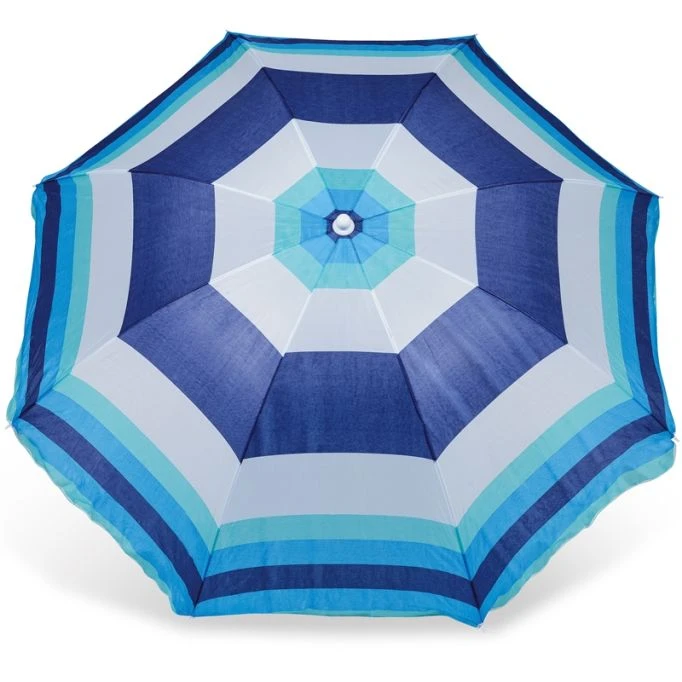 The beach umbrella features an adjustable pole durable and waterproof 170T polyester fabric and plastic tips and cap It is very easy to open and close and it can be folded up and stored in the included carry bag making it easy and convenient to take along for a day at the beach with you.